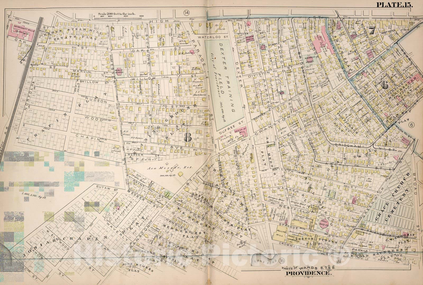 Historic Map : Providence (R.I.), City Atlas Map, Plate 15. Parts of Wards 6, 7, 8, Providence. 1882 - Vintage Wall Art