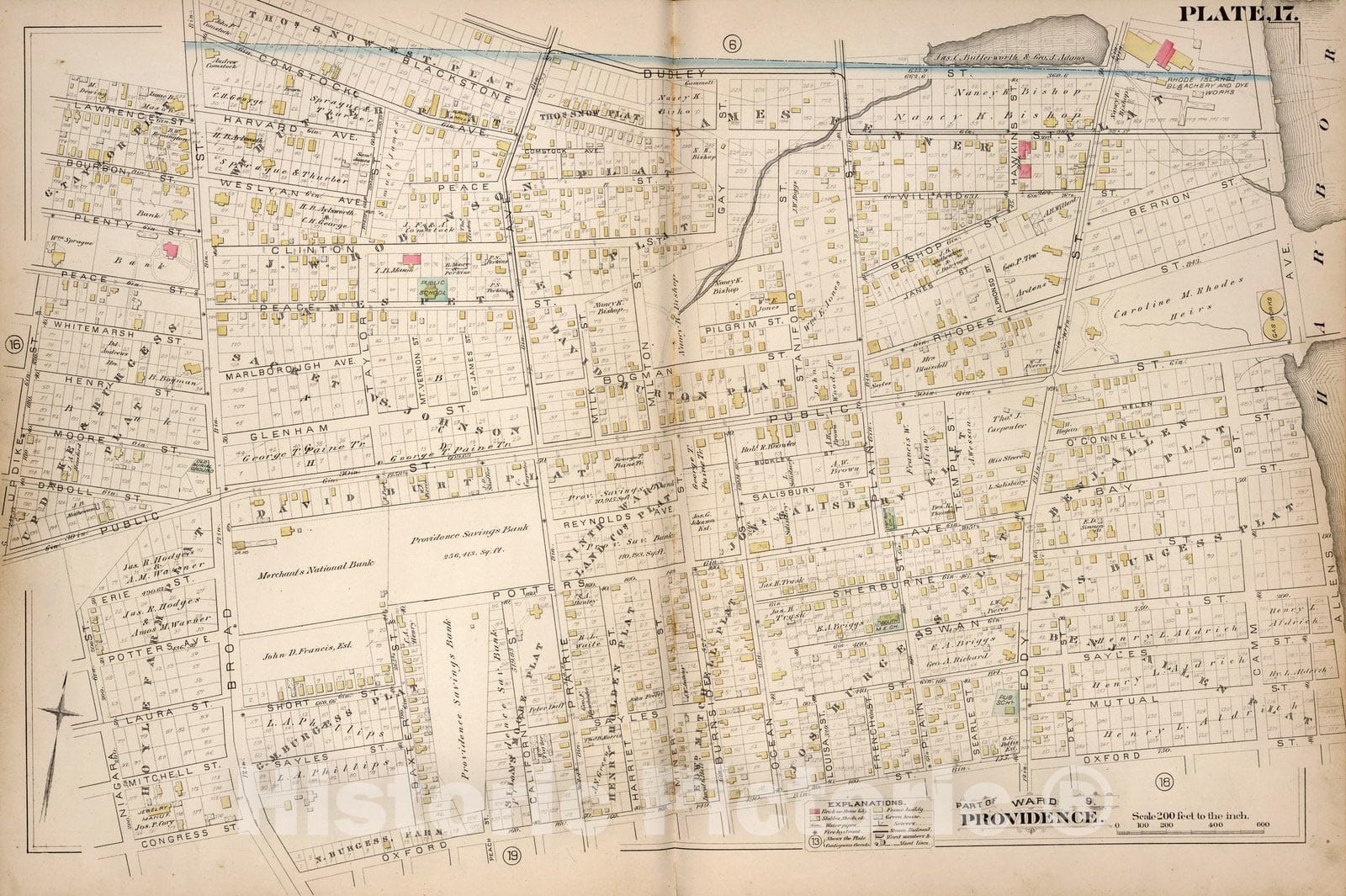 Historic Map : Providence (R.I.), City Atlas Map, Plate 17. Part of Ward 9, Providence. 1882 - Vintage Wall Art