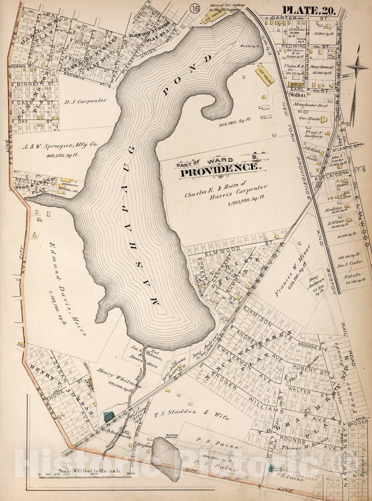 Historic Map : Providence (R.I.), City Atlas Map, Plate 20. Part of Ward 9, Providence. 1882 - Vintage Wall Art