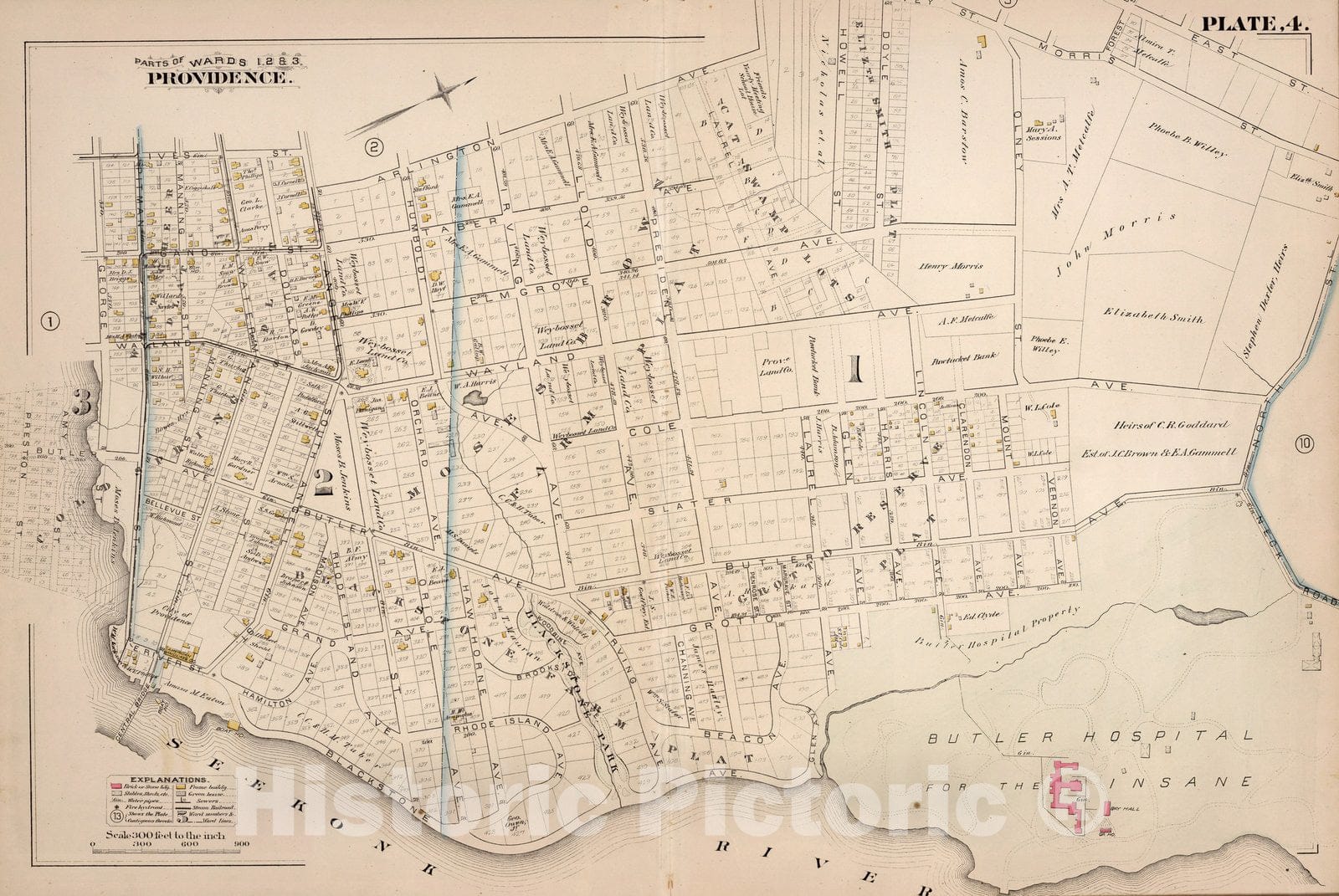• .Historic Map : Providence (R.I.), City Atlas Map, Plate 4. Parts of Wards 1,2, 3, Providence. 1882 - Vintage Wall Art