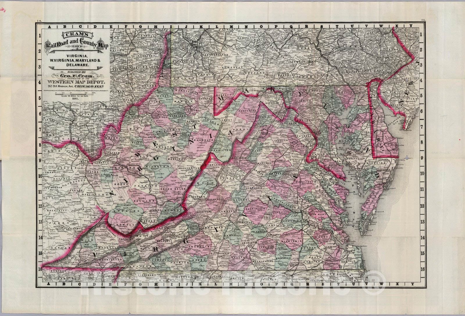 Historic Map : Railroad & County Map of Virginia, W. Virginia, Maryland and Delaware, 1881 - Vintage Wall Art