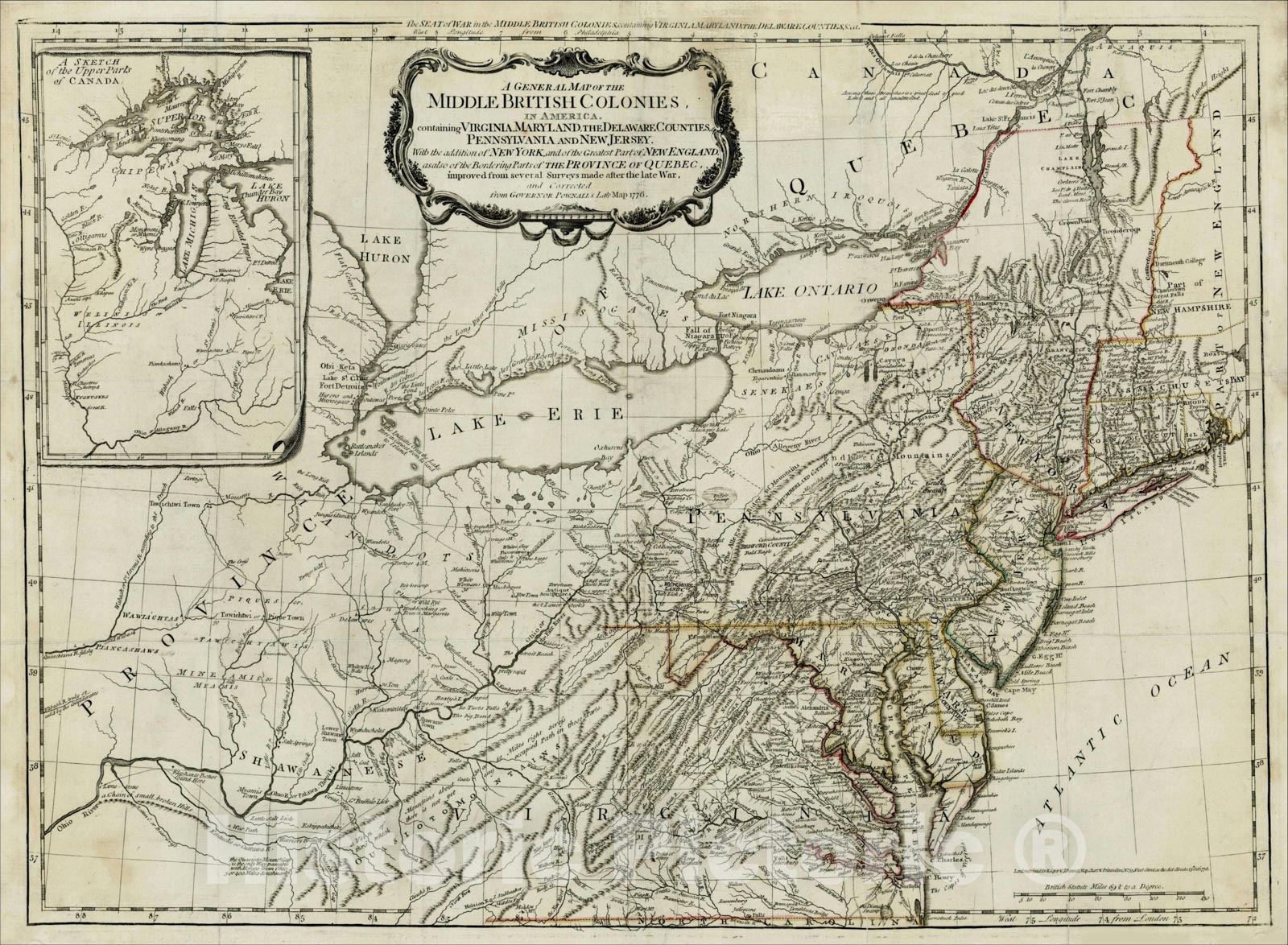 The Seat of War in the Middle British Colonies containing Virginia, Maryland,, 1755, Lewis Evans