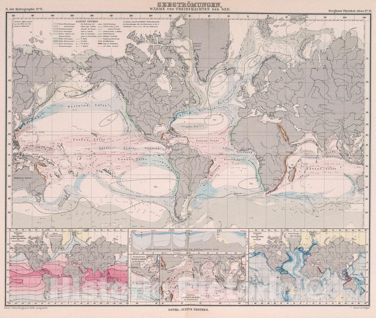 Historic Map : Seestromungen, Warme und treibfrachte der See, 1889 Atlas - Vintage Wall Art