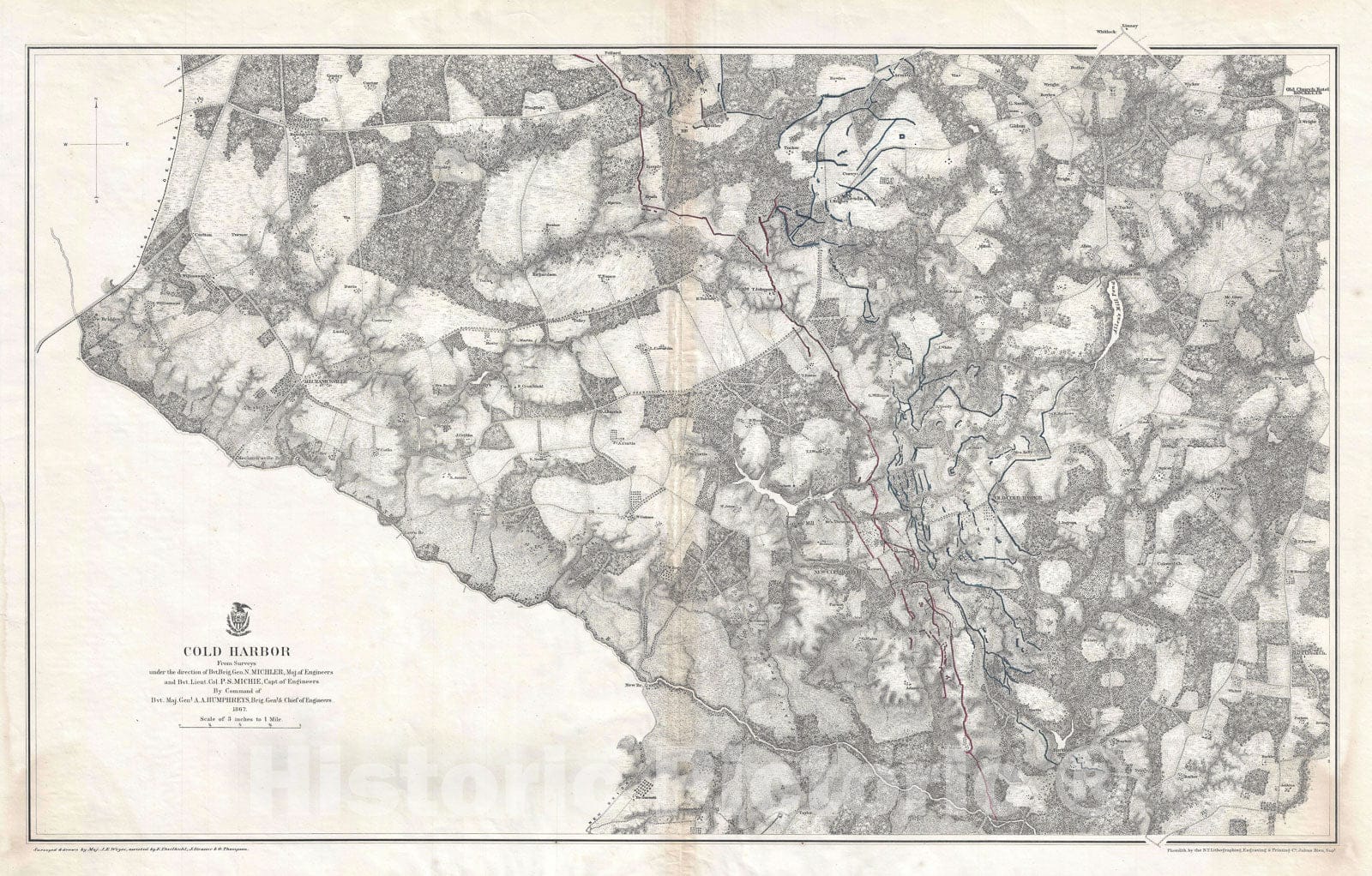 Historic Map : The U.S. Civil War Battlefield of Cold Harbor, Virginia, Weyss, 1867, Vintage Wall Art