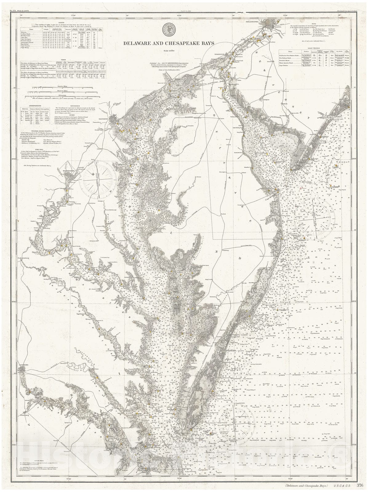 Historic Map : U.S. Coast Survey Nautical Chart or Map of The Chesapeake Bay and Delaware Bay, 1893, Vintage Wall Art