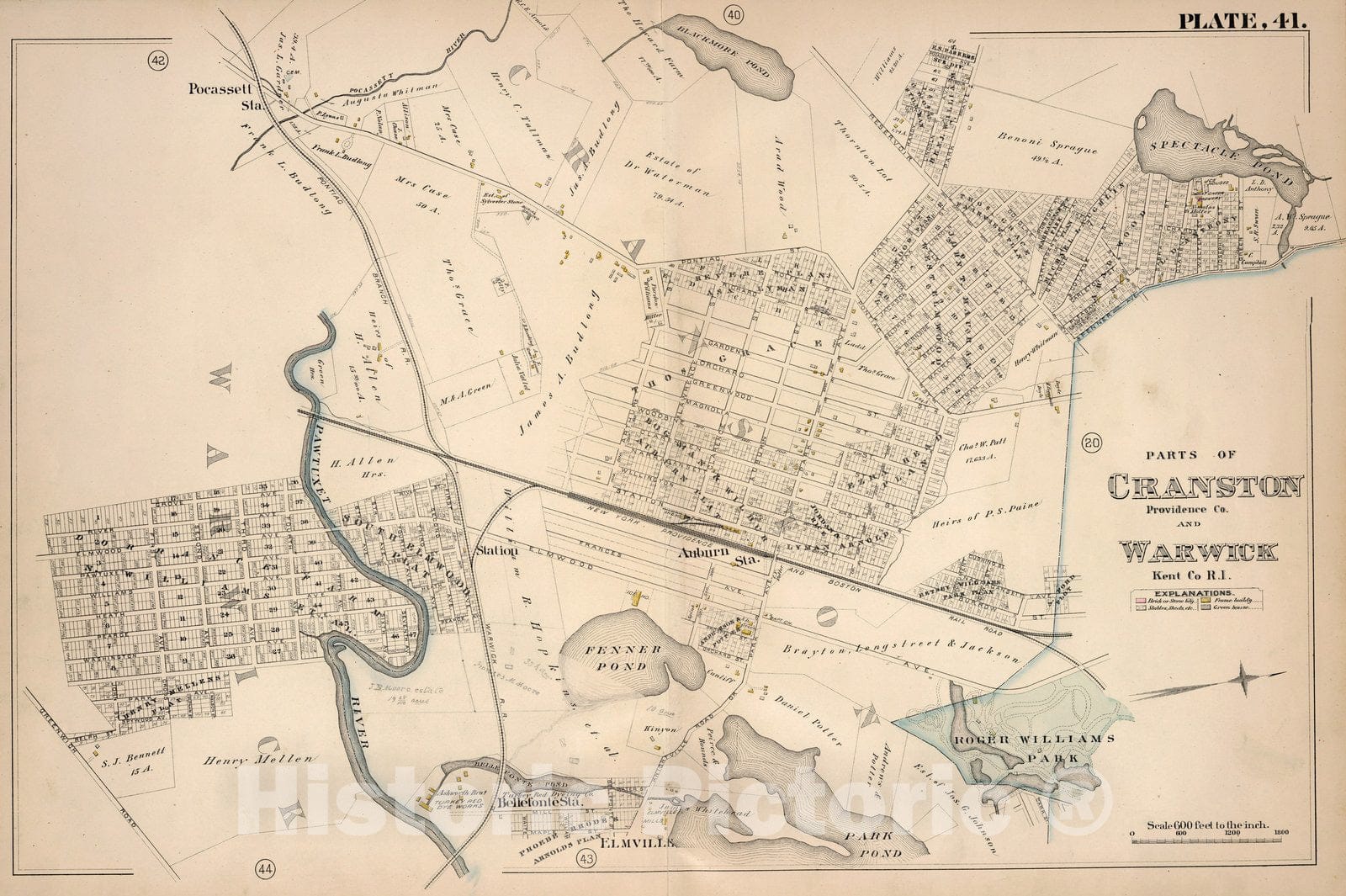 • Historic Wall Map : Cranston (R.I.), City Atlas Map, Plate 41. Parts of Cranston, Providence Co. and Warwick, Kent Co, R.I. 1882 - Vintage Wall Art