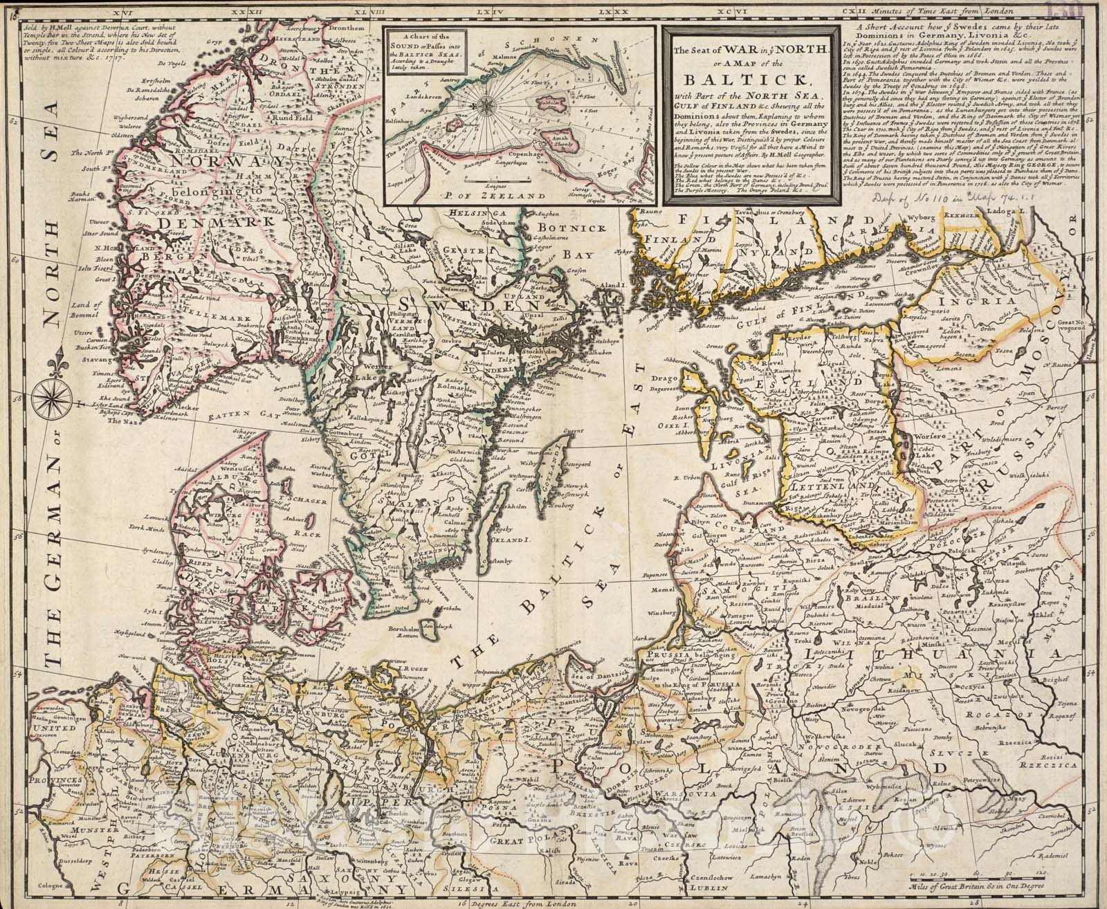 Historical Map, 1717 The seat of war in ye North : or a map of The Baltick, with Part of The North Sea Posture of affaris, Vintage Wall Art