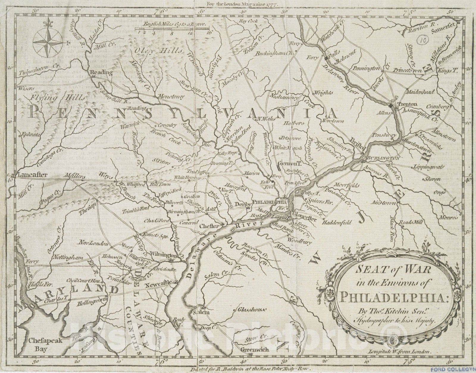 Historical Map, 1777 Seat of war in The Environs of Philadeliphia, Vintage Wall Art