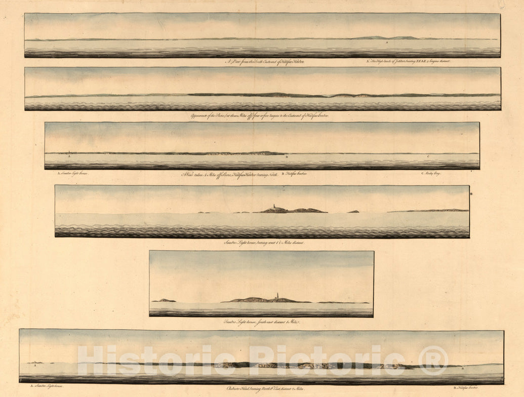 Historical Map, 1777 A View from The South eastward of Halifax Harbor ; Appearance of The Shore at Three Miles Off Four or Five Leagues, Vintage Wall Art