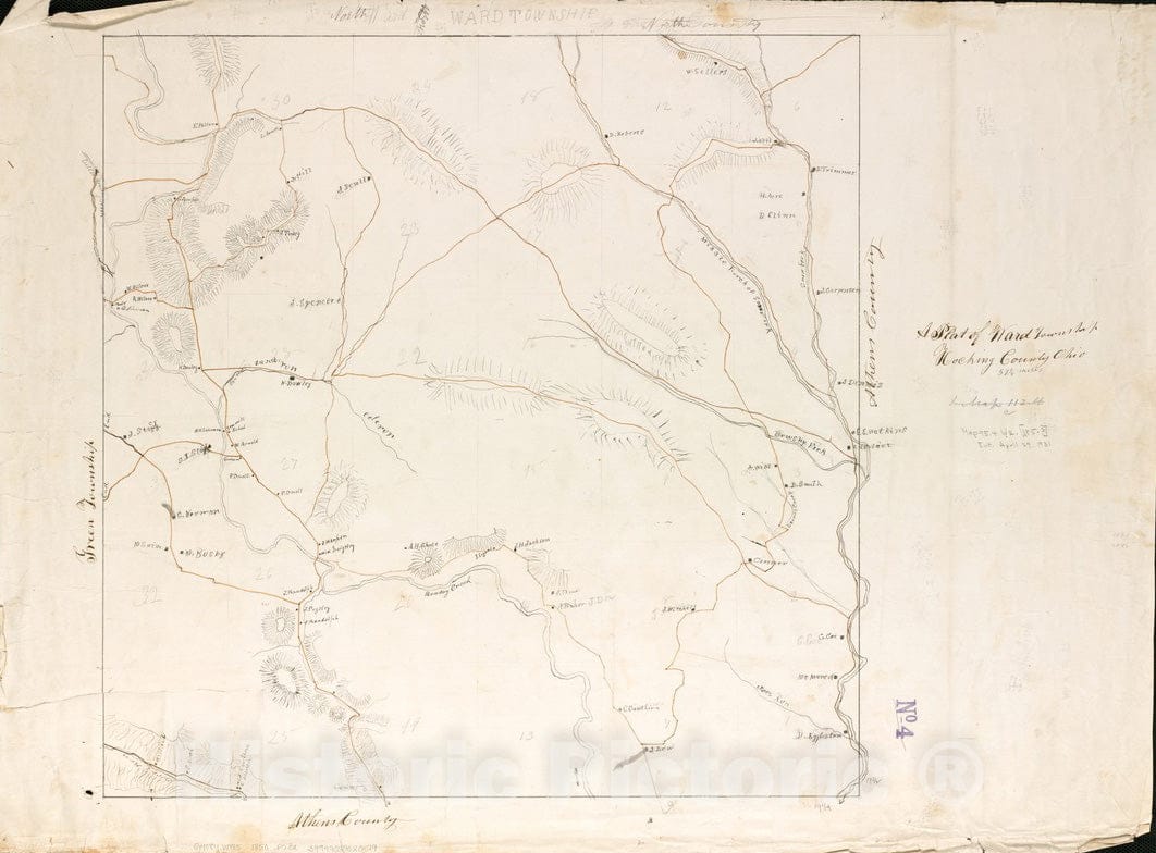 Historical Map, 1850-1859 A plat of Ward township, Hocking County Ohio, Vintage Wall Art