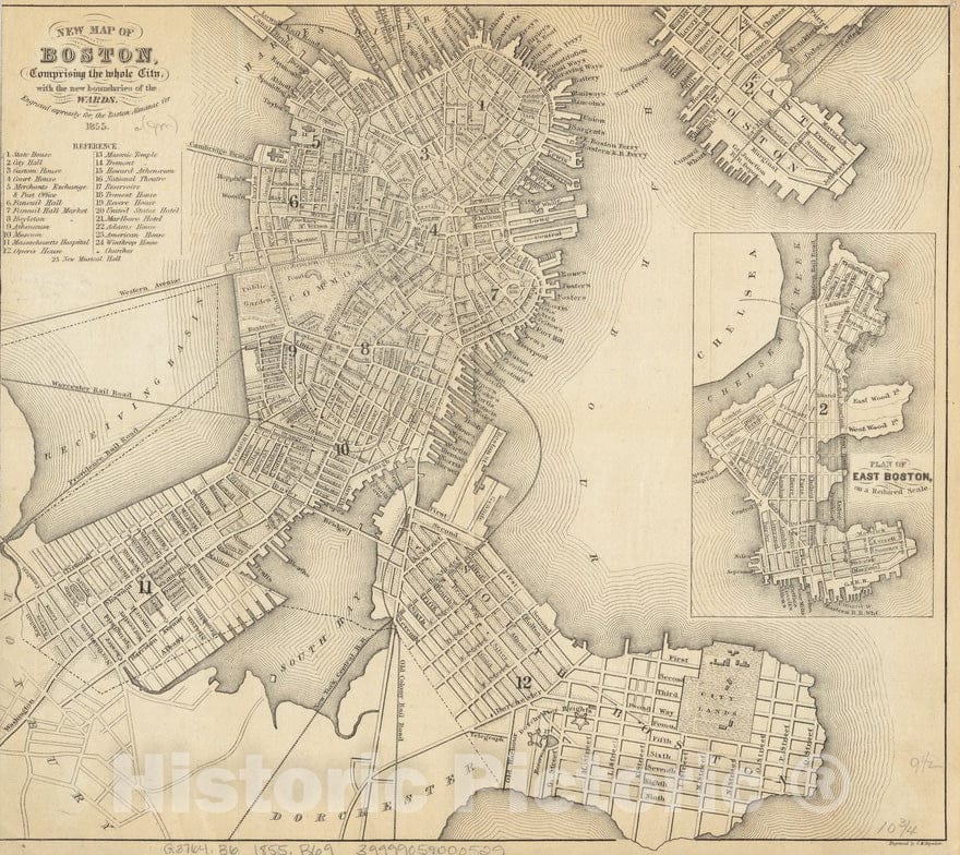 Historical Map, 1855 New map of Boston, comprising The Whole City, with The New Boundaries of The wards, Vintage Wall Art