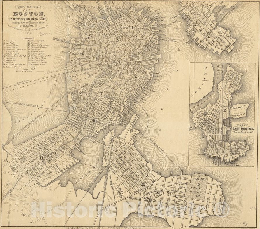 Historical Map, 1857 New map of Boston, comprising the whole city, with the new boundaries of the wards, Vintage Wall Art : 5133193