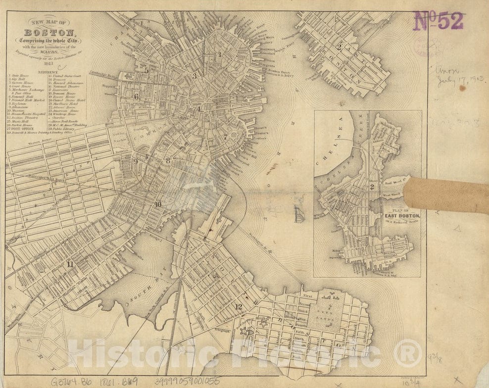 Historical Map, 1861 New map of Boston, comprising The Whole City, with The New Boundaries of The wards, Vintage Wall Art