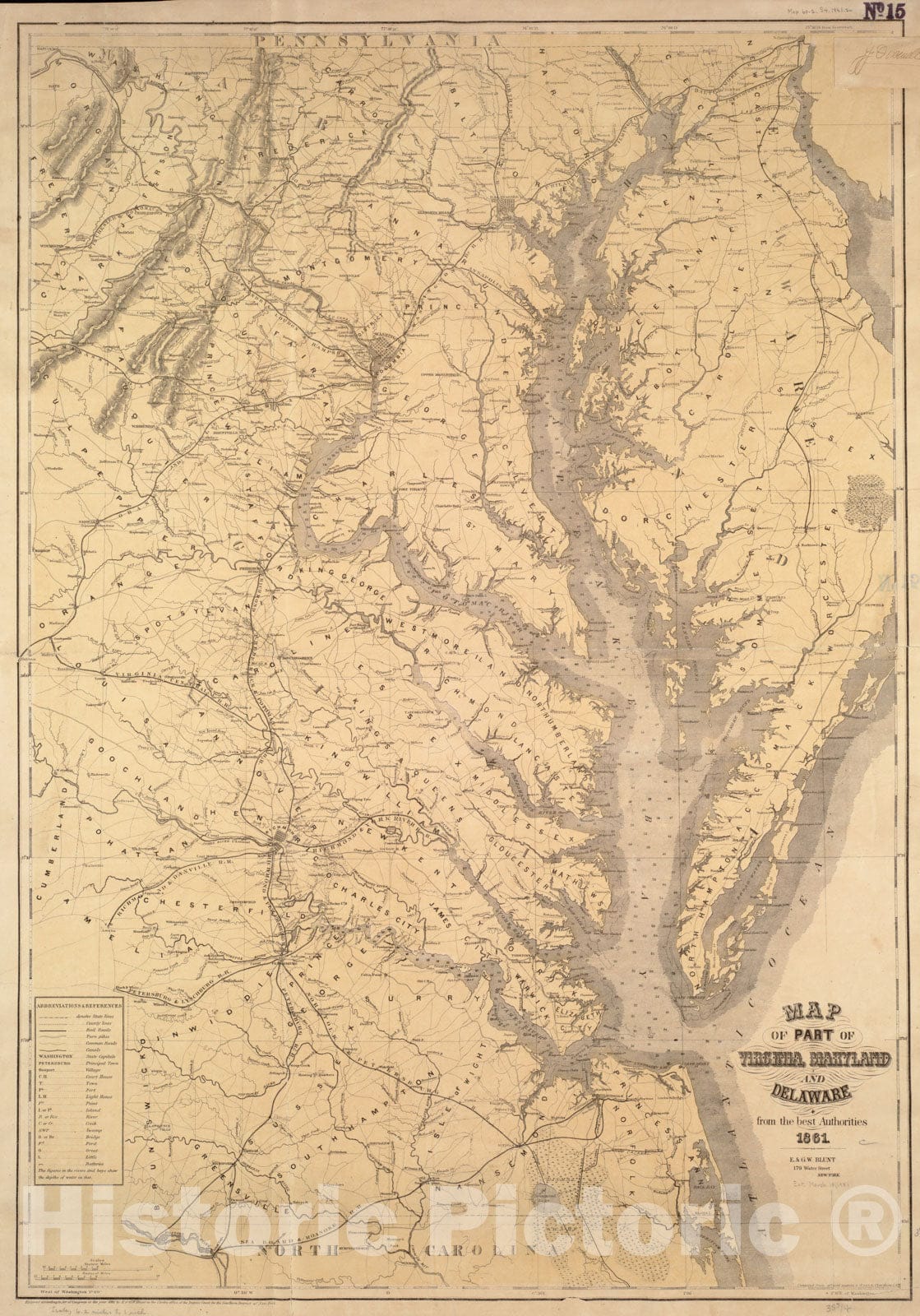 Historical Map, 1861 Map of Part of Virginia, Maryland and Delaware from The Best Authorities, Vintage Wall Art