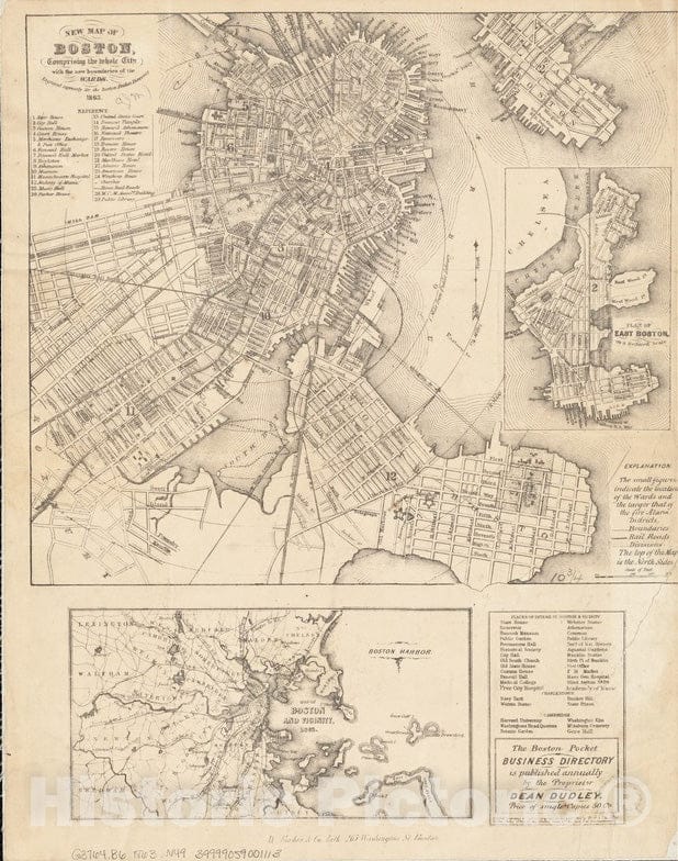 Historical Map, 1863 New map of Boston, comprising The Whole City with The New boundariess of The wards, Vintage Wall Art