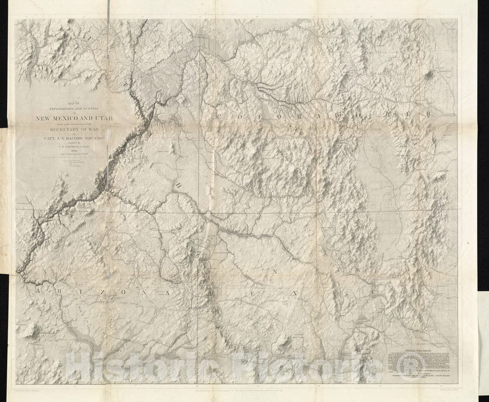 Historical Map, 1864 Map of explorations and surveys in New Mexico and Utah Made Under The Direction of The Secretary of War by Capt. J. N. Macomb topl, 1860, Vintage Wall Art