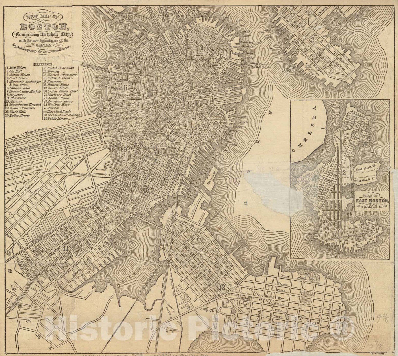 • Historical Map, 1865 New map of Boston, comprising The Whole City, with The New Boundaries of The wards, Vintage Wall Art