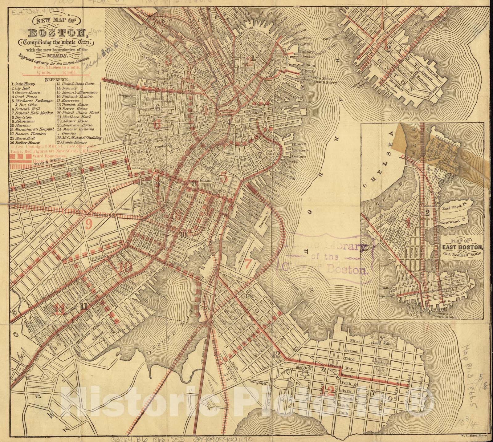 Historical Map, 1866 New map of Boston, comprising The Whole City, with The New Boundaries of The wards, Vintage Wall Art