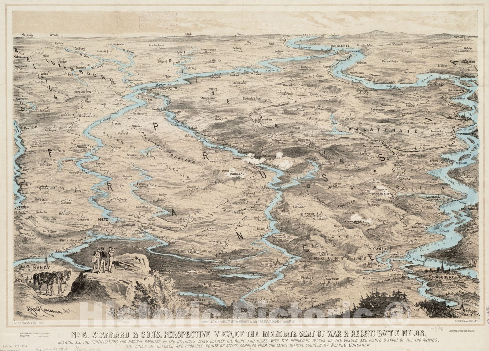 Historical Map, 1870 Stannard & Son's, perspective view, of the immediate seat of war & recent battle fields, shewing all the fortifications, Vintage Wall Art