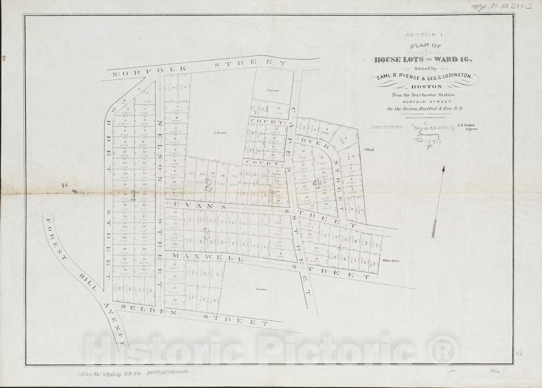 Plan of house lots in ward 16 : owned by Saml. B. Pierce & Geo. C. Ludington, Boston, near the Dorchester Station, Norfolk Street, on the Boston, Hartford & Erie R.R