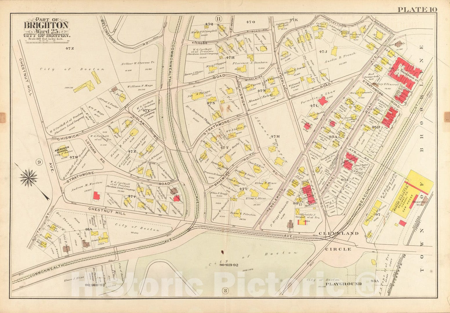 Historical Map, 1909 Atlas of the city of Boston, ward 25, Brighton : plate 10, Vintage Wall Art