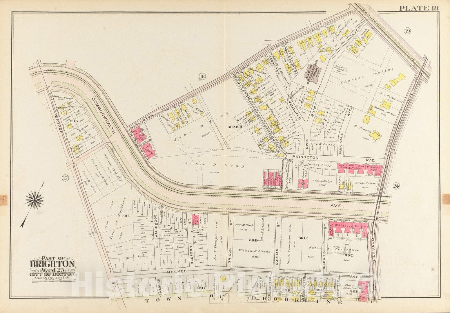 Historical Map, 1909 Atlas of The City of Boston, Ward 25, Brighton : Plate 18, Vintage Wall Art