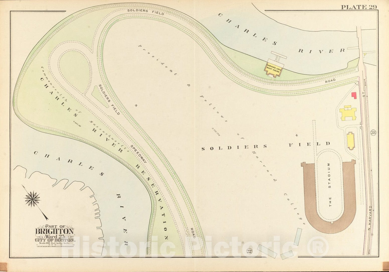 • .Historical Map, 1909 Atlas of The City of Boston, Ward 25, Brighton : Plate 29, Vintage Wall Art