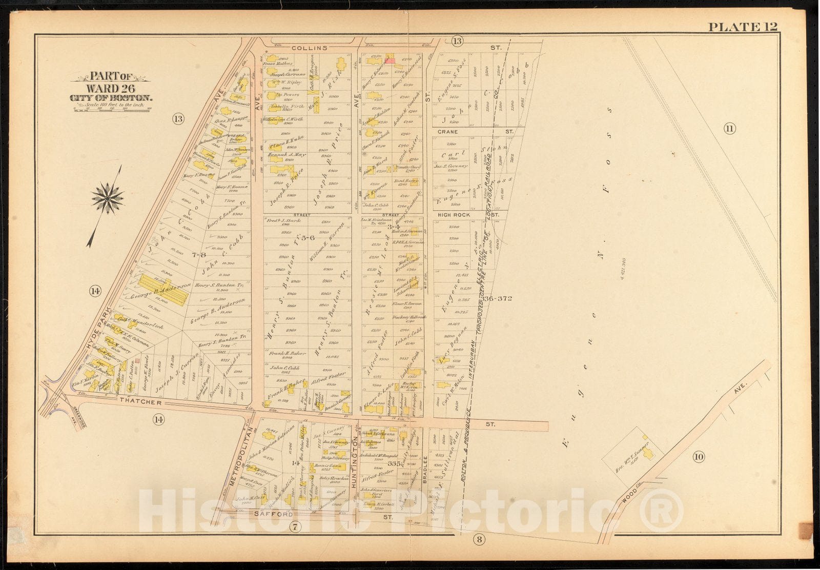 Historical Map, 1912 Atlas of The City of Boston, Ward 26, Hyde Park : Plate 12, Vintage Wall Art