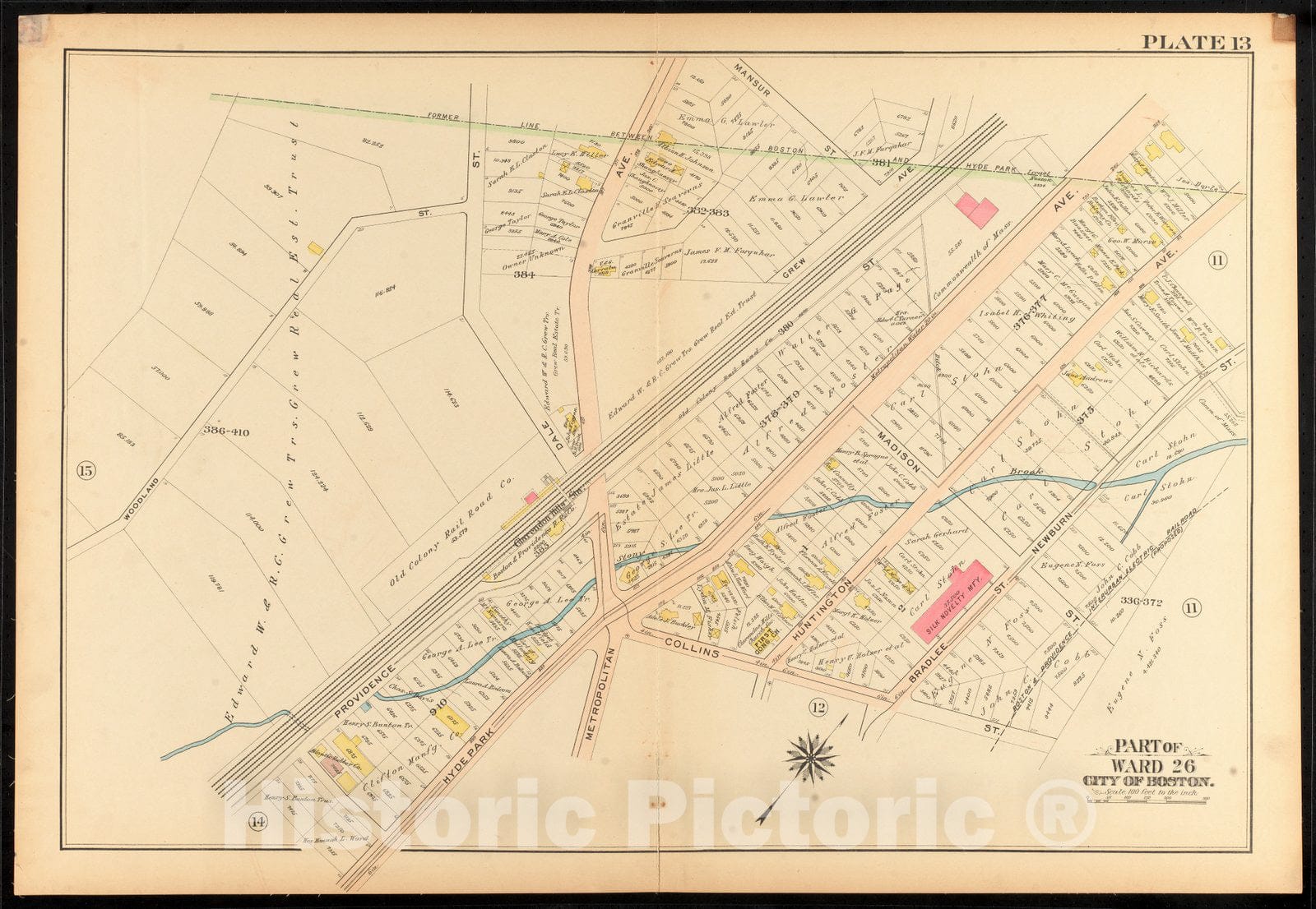 • .Historical Map, 1912 Atlas of the city of Boston, ward 26, Hyde Park : plate 13, Vintage Wall Art