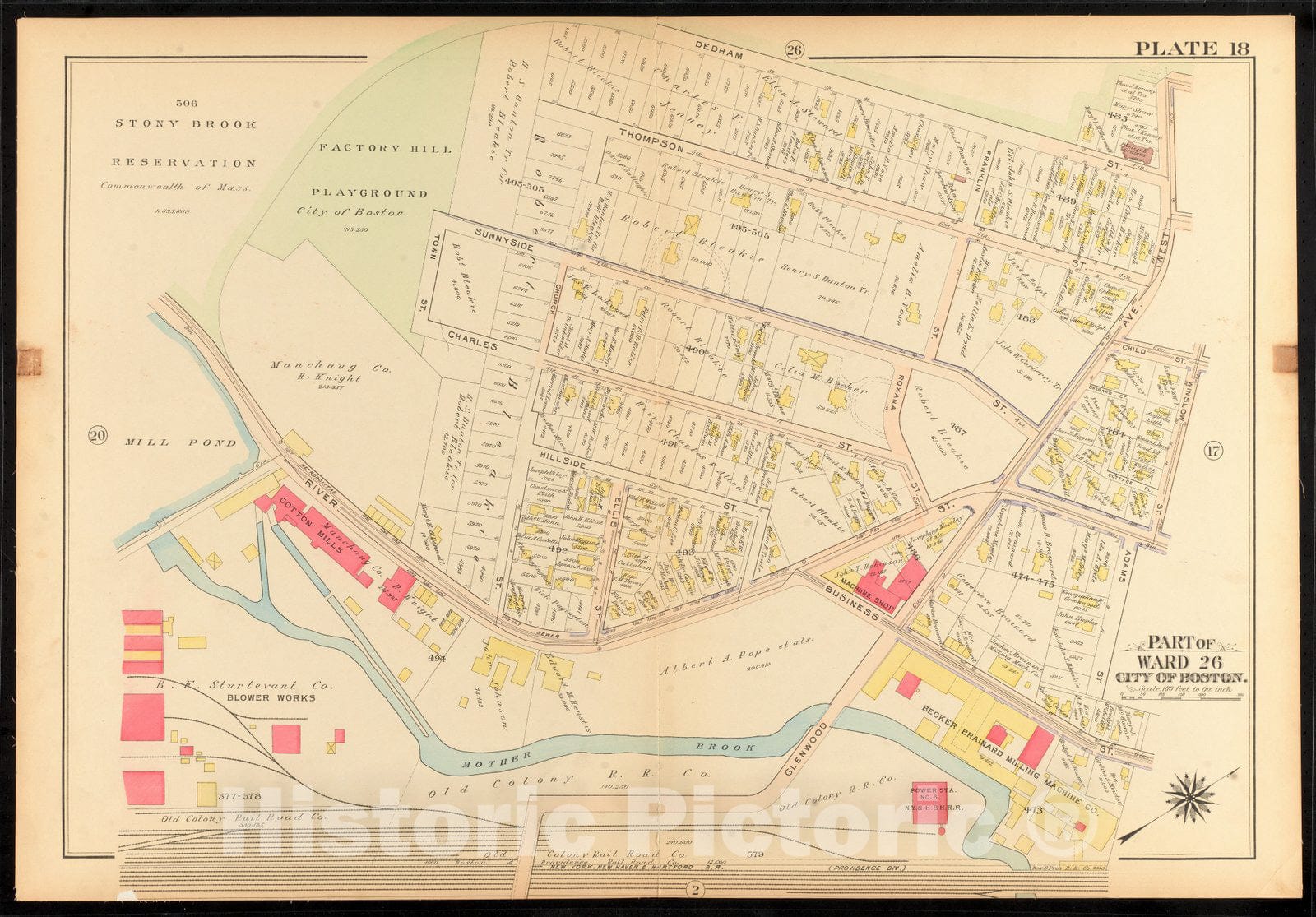 • .Historical Map, 1912 Atlas of The City of Boston, Ward 26, Hyde Park : Plate 18, Vintage Wall Art