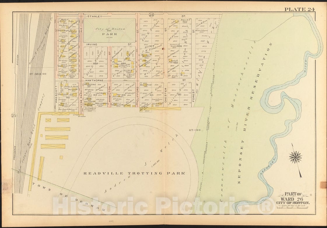 Historical Map, 1912 Atlas of The City of Boston, Ward 26, Hyde Park : Plate 24, Vintage Wall Art