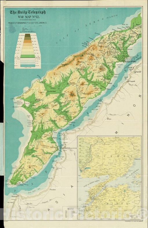 • .Historical Map, 1915 The Daily Telegraph war map no. 12, Vintage Wall Art