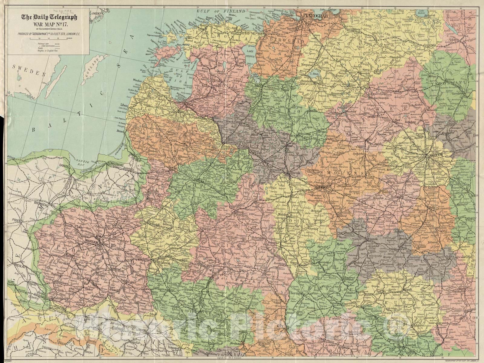 Historical Map, 1915 The Daily Telegraph war map no. 17, Vintage Wall Art