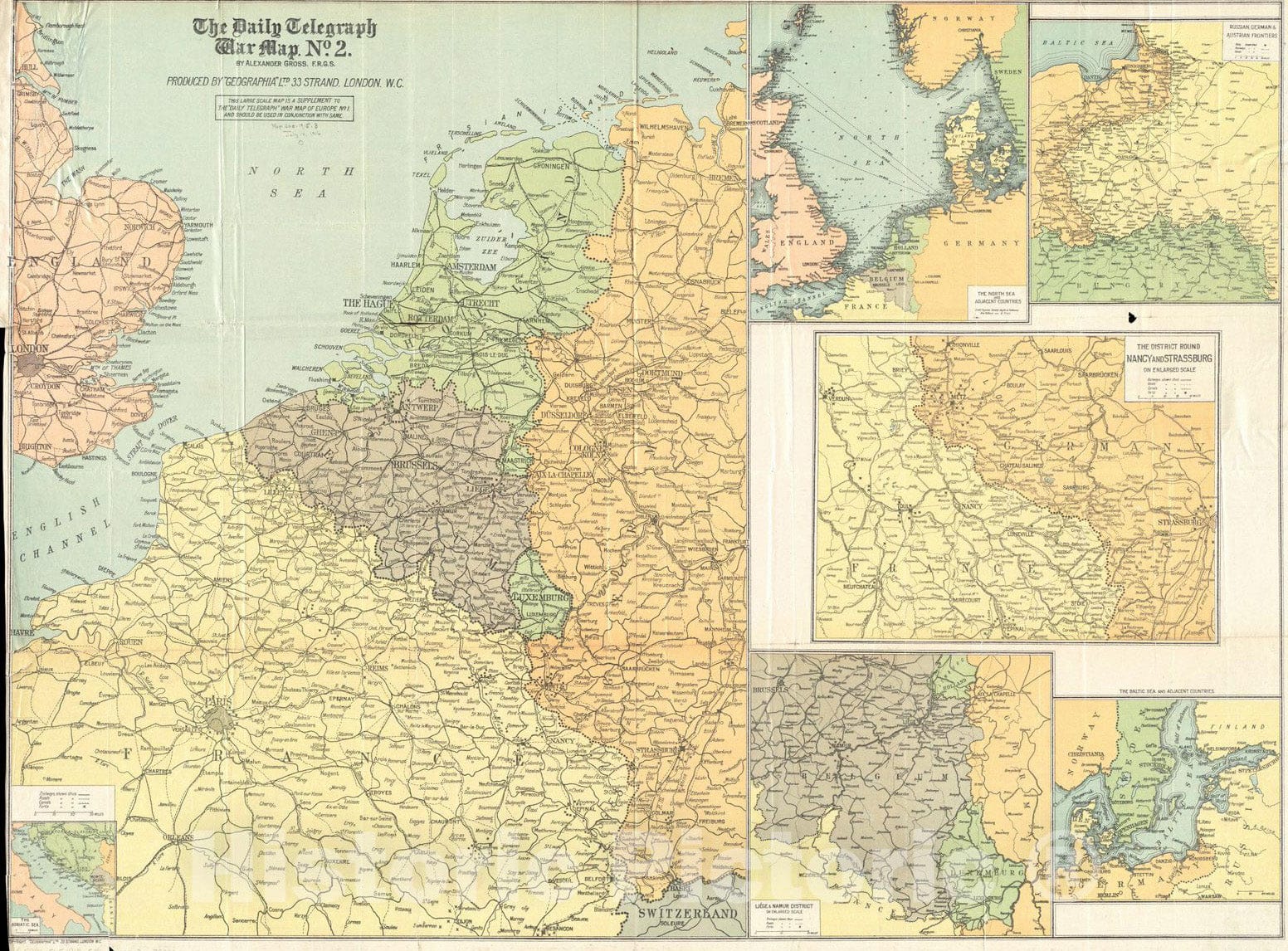 Historical Map, 1915 The Daily Telegraph war map no. 2, Vintage Wall Art