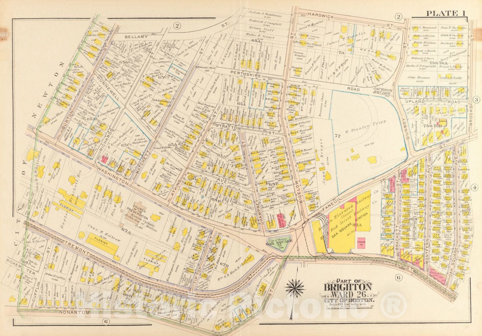 Historical Map, 1916 Atlas of the city of Boston, wards 25 & 26, Brighton : plate 1, Vintage Wall Art