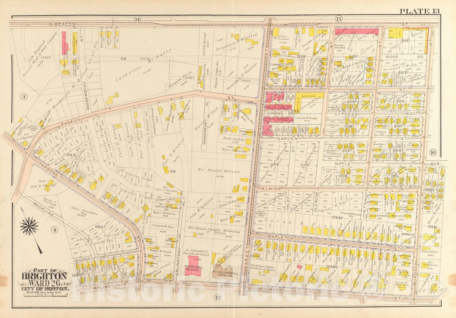 Historical Map, 1916 Atlas of the city of Boston, wards 25 & 26, Brighton : plate 13, Vintage Wall Art