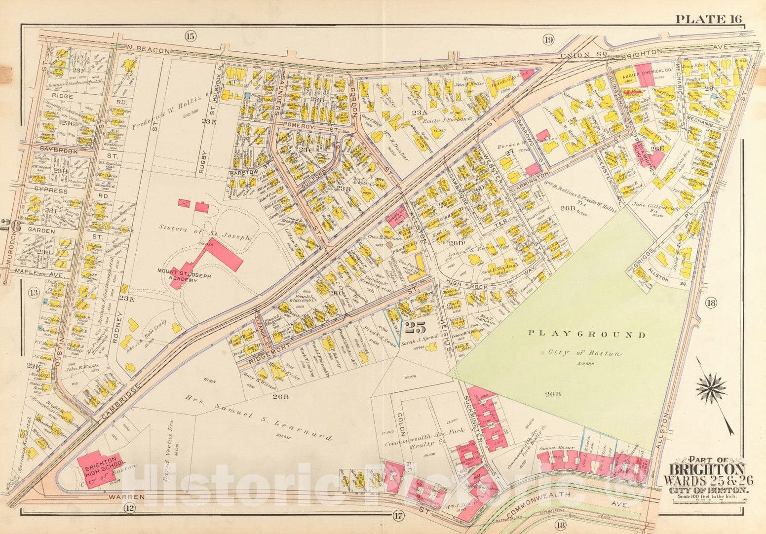 Historical Map, 1916 Atlas of the city of Boston, wards 25 & 26, Brighton : plate 16, Vintage Wall Art