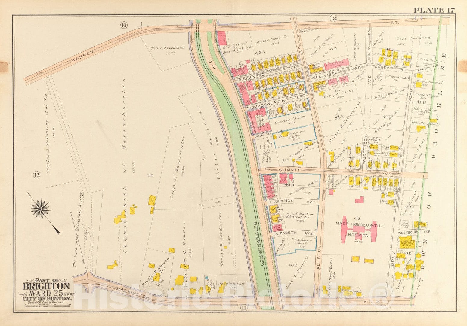 Historical Map, 1916 Atlas of The City of Boston, wards 25 & 26, Brighton : Plate 17, Vintage Wall Art