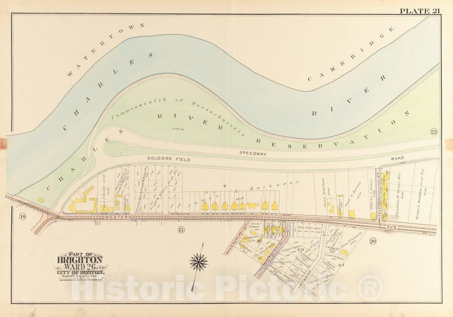 Historical Map, 1916 Atlas of The City of Boston, wards 25 & 26, Brighton : Plate 21, Vintage Wall Art