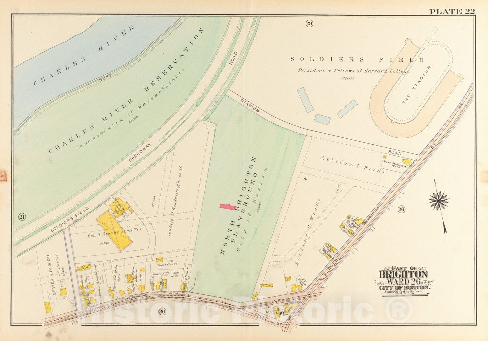 • .Historical Map, 1916 Atlas of The City of Boston, wards 25 & 26, Brighton : Plate 22, Vintage Wall Art