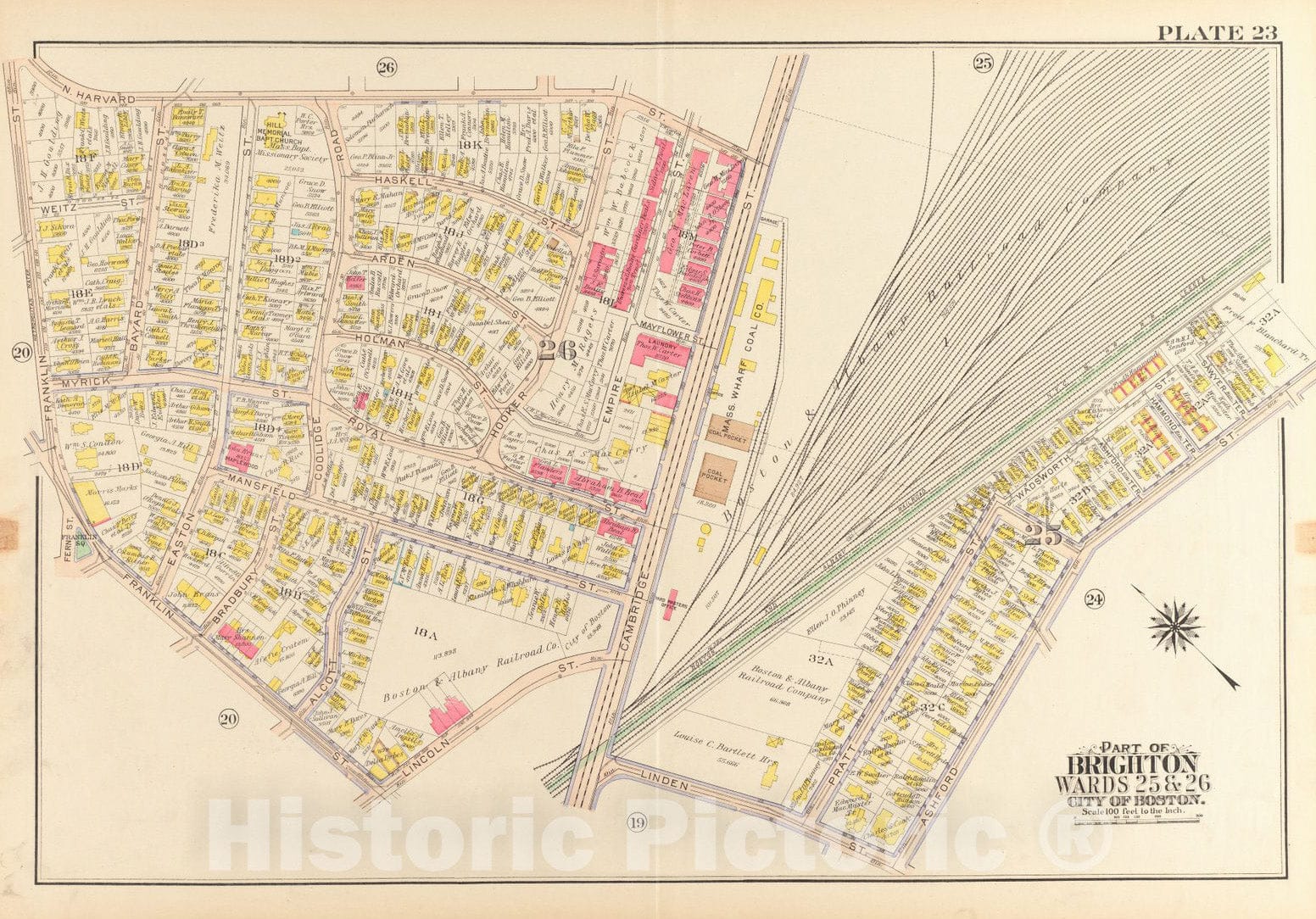 Historical Map, 1916 Atlas of The City of Boston, wards 25 & 26, Brighton : Plate 23, Vintage Wall Art
