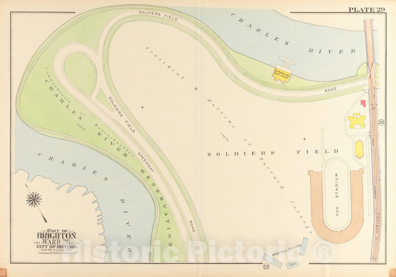 Historical Map, 1916 Atlas of The City of Boston, wards 25 & 26, Brighton : Plate 29, Vintage Wall Art