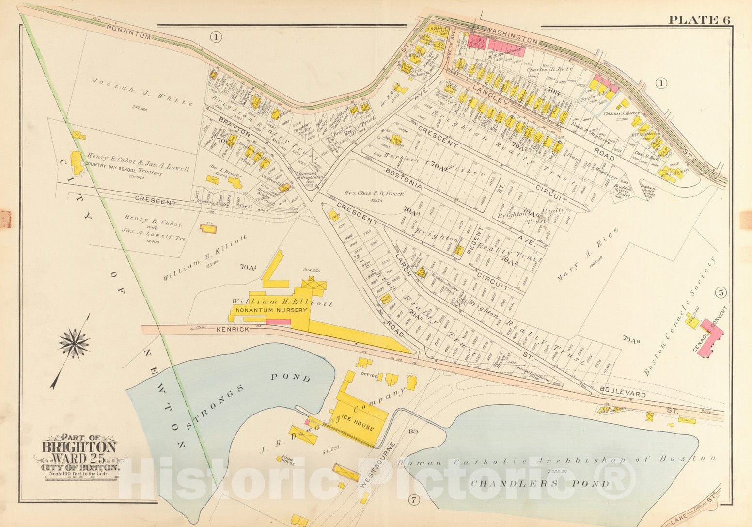 Historical Map, 1916 Atlas of the city of Boston, wards 25 & 26, Brighton : plate 6, Vintage Wall Art