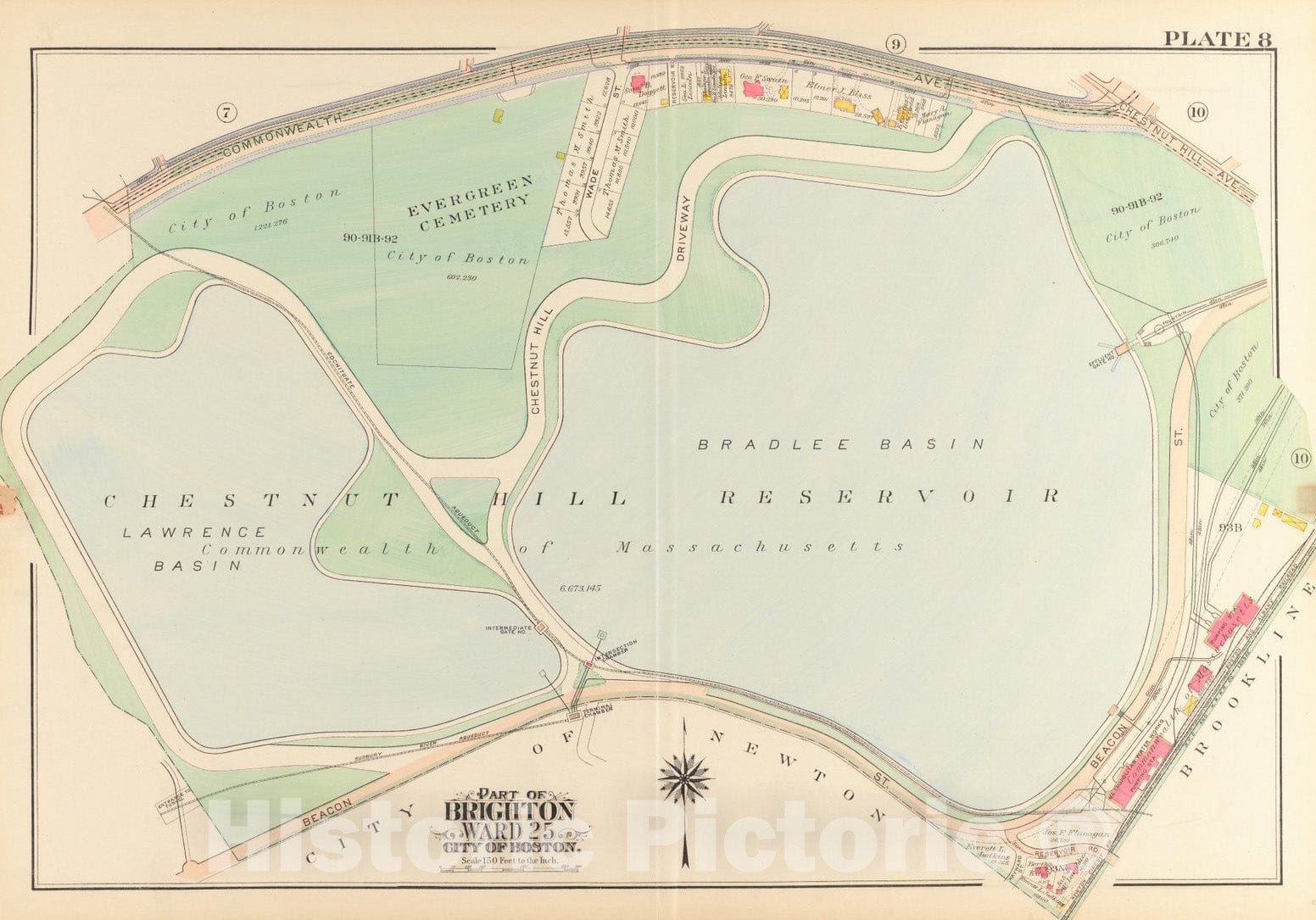 Historical Map, 1916 Atlas of The City of Boston, wards 25 & 26, Brighton : Plate 8, Vintage Wall Art