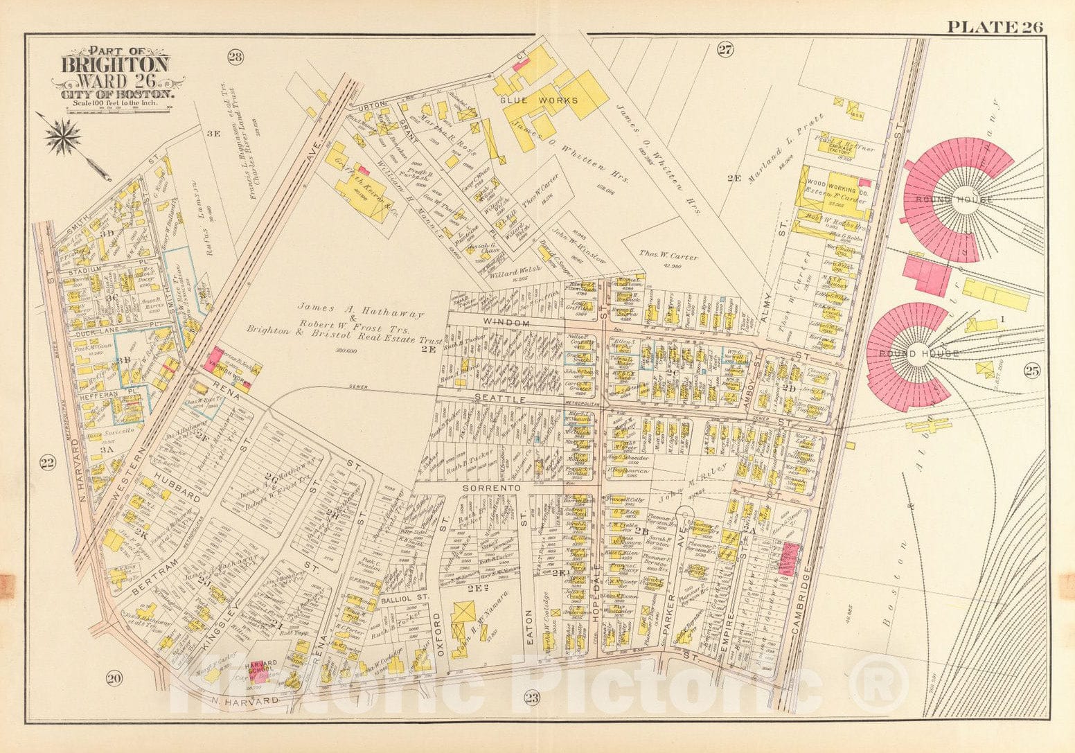 Historical Map, 1916 Atlas of The City of Boston, wards 25 & 26, Brighton : Plate 26, Vintage Wall Art