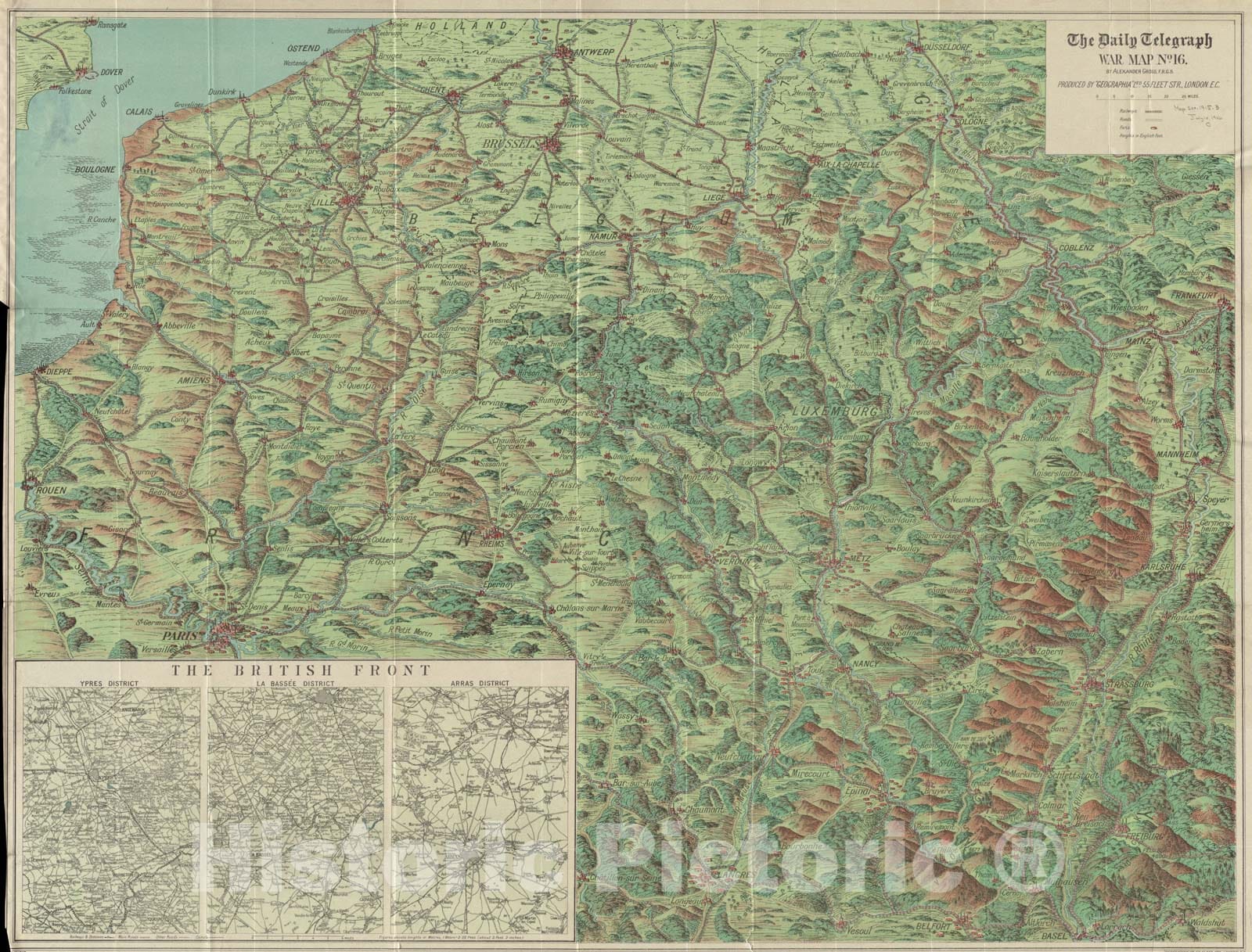 Historical Map, 1916 The Daily Telegraph war map no. 16, Vintage Wall Art