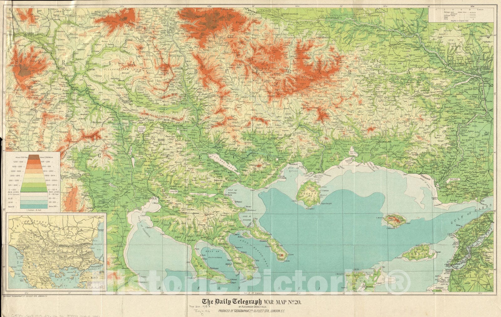 Historical Map, 1916 The Daily Telegraph war map no. 20, Vintage Wall Art