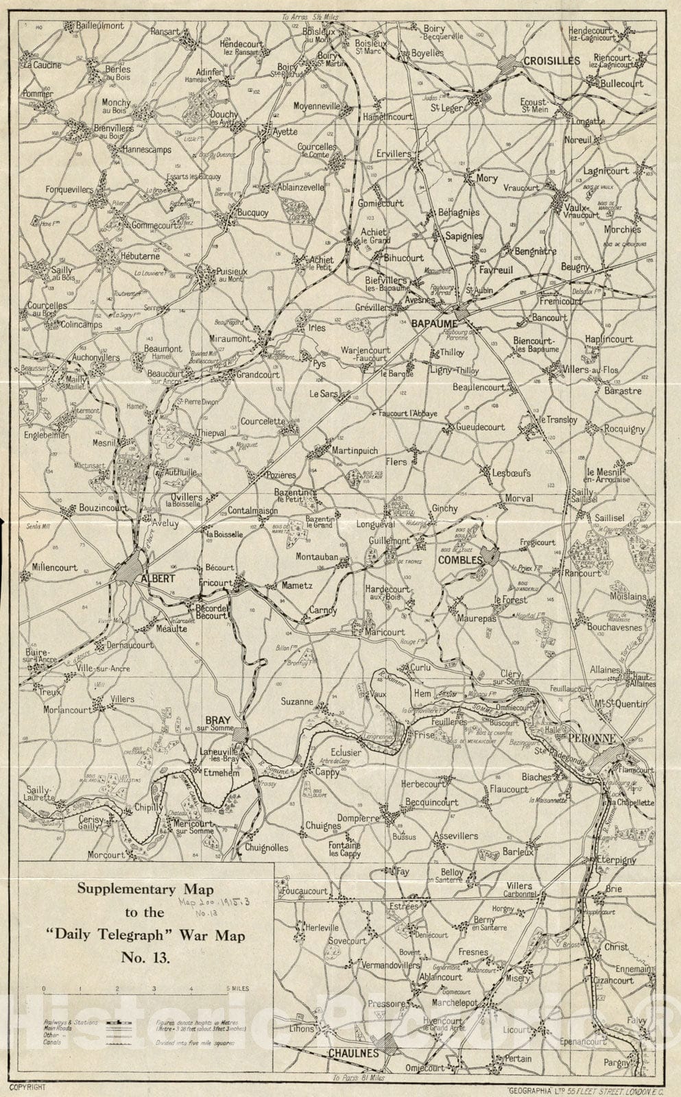 Historical Map, 1916 Supplementary map to The 'Daily Telegraph' war map no. 13, Vintage Wall Art