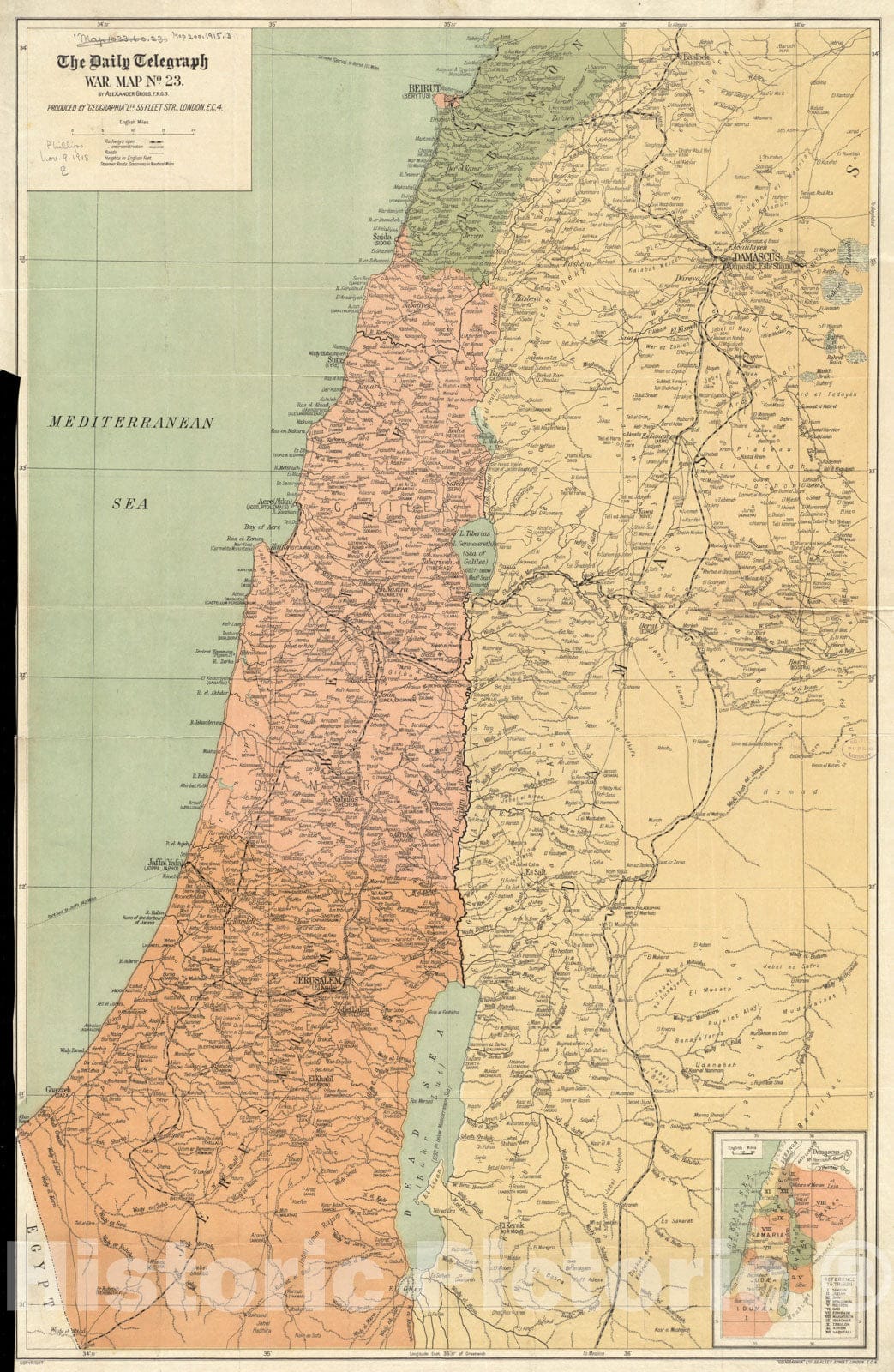 Historical Map, 1917 The Daily telegraph war map no. 23, Vintage Wall Art