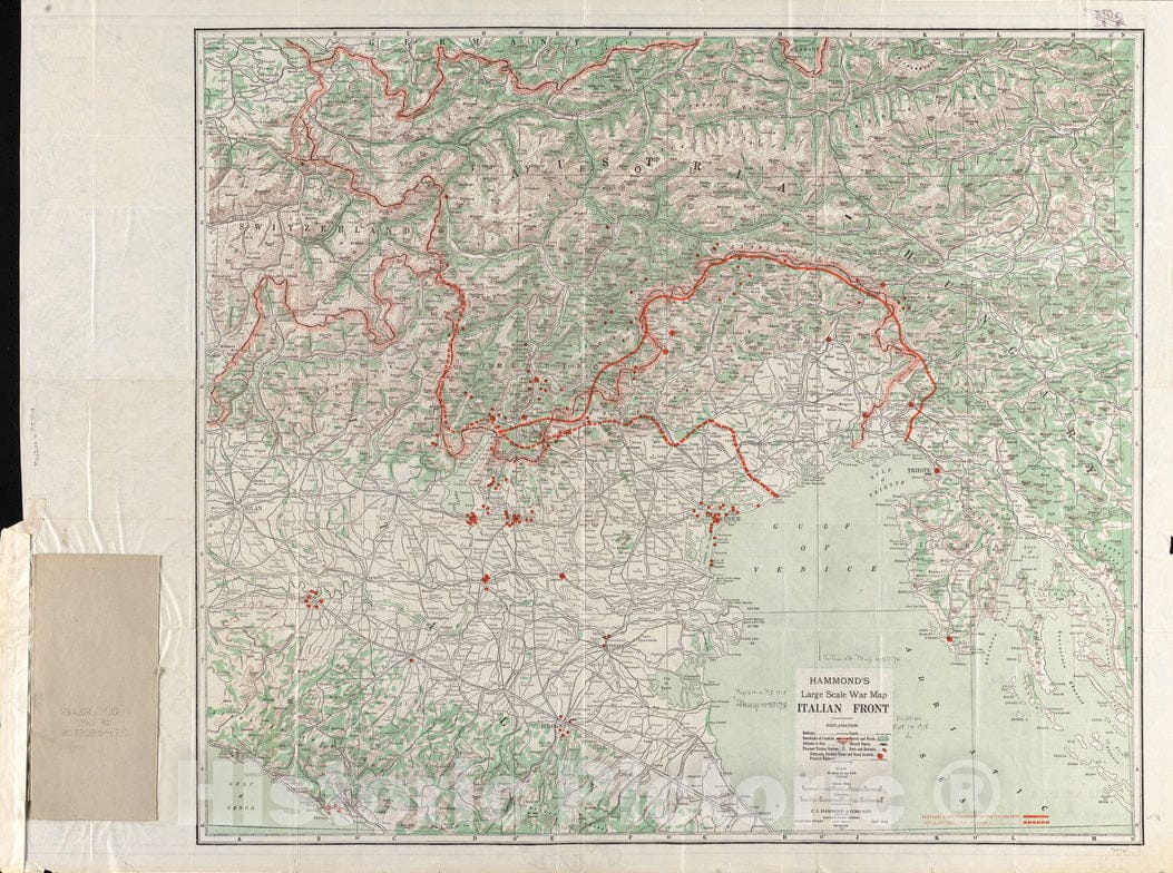 Historical Map, 1918 Hammond's Large Scale war map of The Italian Front, Vintage Wall Art